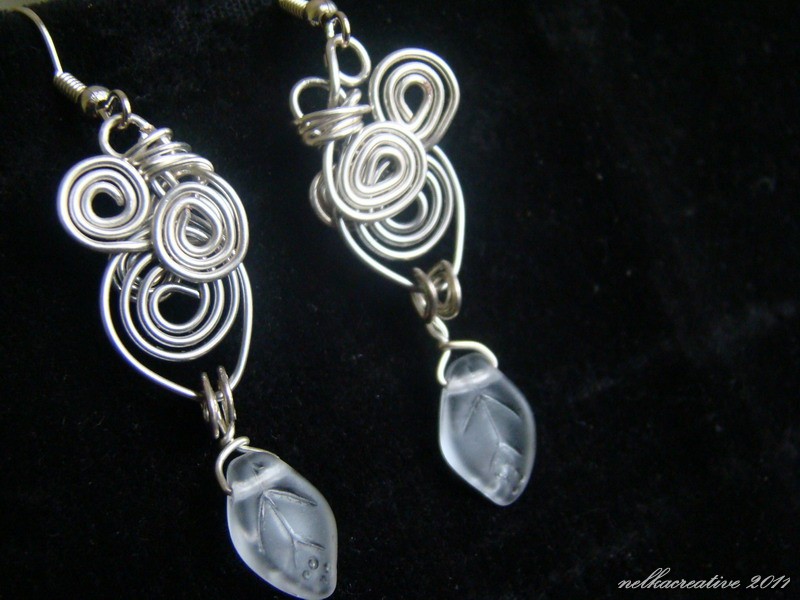 Nausnice zdobia sklenene listky, rovnakej farby a povrchovej upravy ako ma kamienok privesku.